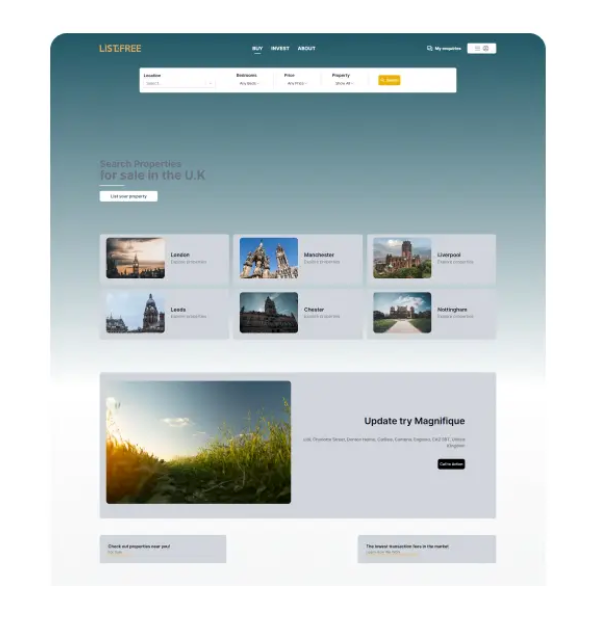 List4Free is a web based portal aiming to become the UK Real Estate Market place. The Portal gives the opportunity to everyone who owns a property, to over 500.000 brokers and real estate agents, to over 100.000 real estate development companies as well as to banks, bailiffs etc to offer directly to the market for free properties that are for sale. The Portal introduces a new trustworthy and marketing free instrument in a highly competitive market such as the UK's, providing to buyers and sellers the space to interact directly and enable transactions.